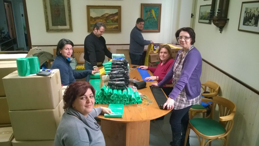 Da lunedì scorso è iniziata la distribuzione alle famiglie degli appositi kit iniziali predisposti per guidare i cittadini in questo nuovo modello di conferimento dei rifiuti e consentirgli di realizzarlo. Ogni kit è comprensivo di un contenitore per umido (colore marrone), uno per carta e cartone (colore blu), quest’ultimo finanziato attraverso il bando Anci-Comieco, dei sacchetti necessari (5 colori diversi per altrettante frazioni) e dei materiali illustrativi con le informazioni essenziali (guida e calendario di raccolta).