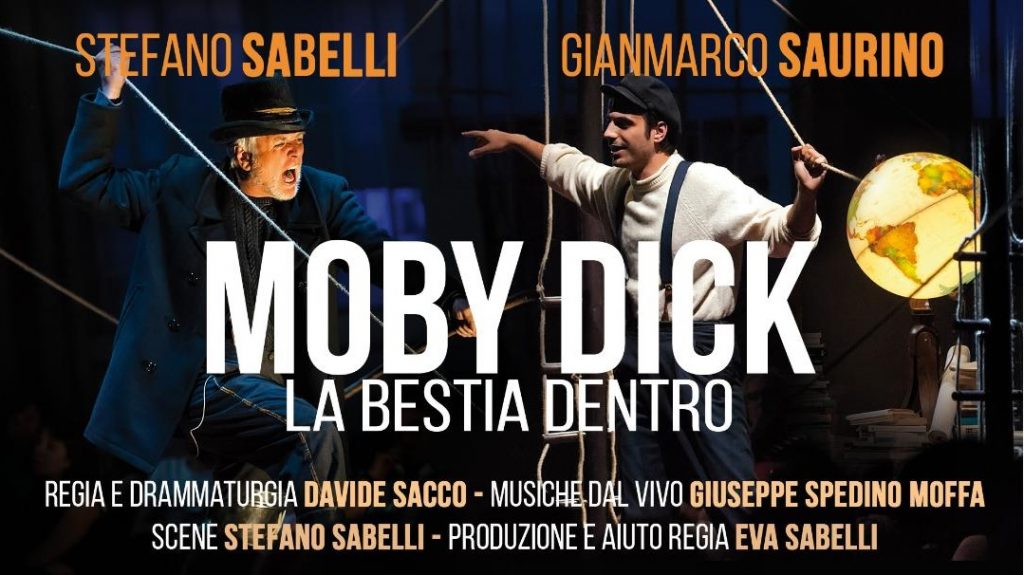 Saranno Stefano SABELLI e Gianmarco SAURINO a tenere a battesimo, domenica 9 dicembre, la nuova stagione del GRILLO di Soverato denominata UN AMORE DI TEATRO. C’è, dunque, grande attesa per lo spettacolo “MOBY DICK, la bestia dentro” ispirato al celebre romanzo di Herman Melville. Lo spettacolo è scritto e diretto da Davide Sacco con una particolarità che permette di coinvolgere in maniera molto partecipativa gli spettatori.
