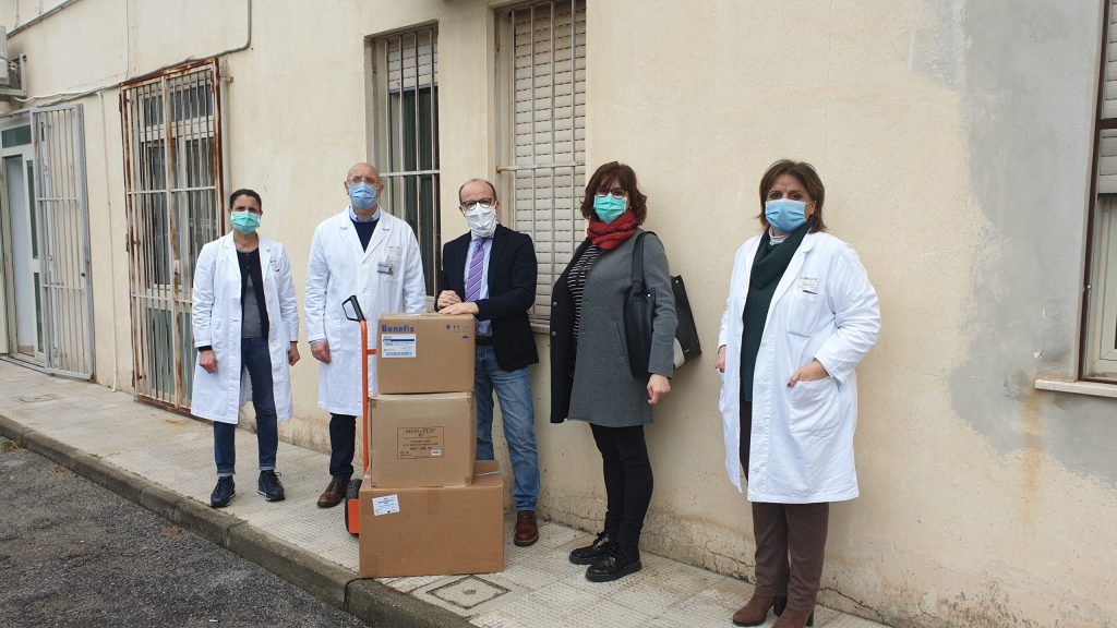 in considerazione del periodo di Emergenza sanitaria, e pandemia a livello globale, a causa del virus Covid19, e sentita la necessità di approvvigionare il più possibile i nostri presidi sanitari con Dispositivi di Protezione Individuale, ha consegnato e donato alla Direzione Medica del Presidio Ospedaliero di Soverato (CZ), nella persona del Direttore Dott. Antonio Gallucci, 1000 Copriscarpe, 1000 Cappellini, e 750 Mascherine chirurgiche.