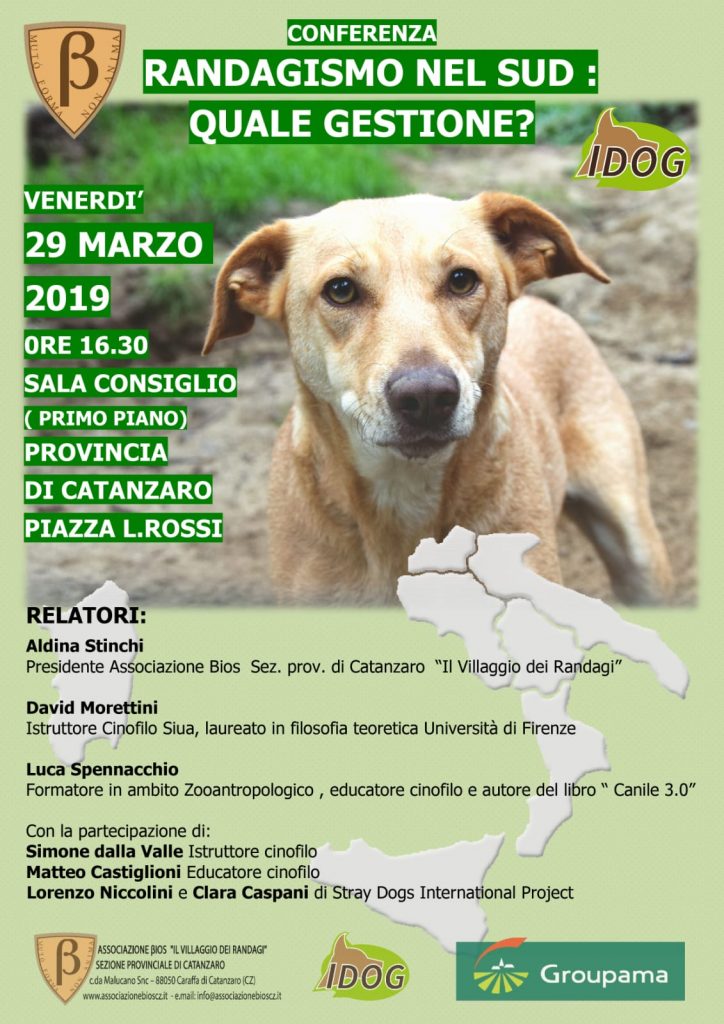 “Randagismo nel Sud: quale gestione?”, questo il tema della conferenza – che avrà luogo venerdì 29 marzo alle ore 16,30 presso la Sala Consiliare dell’Amministrazione Provinciale di Catanzaro – proposto dalla sezione provinciale dell’associazione “Bios” in collaborazione con l’asd “I Dog”.