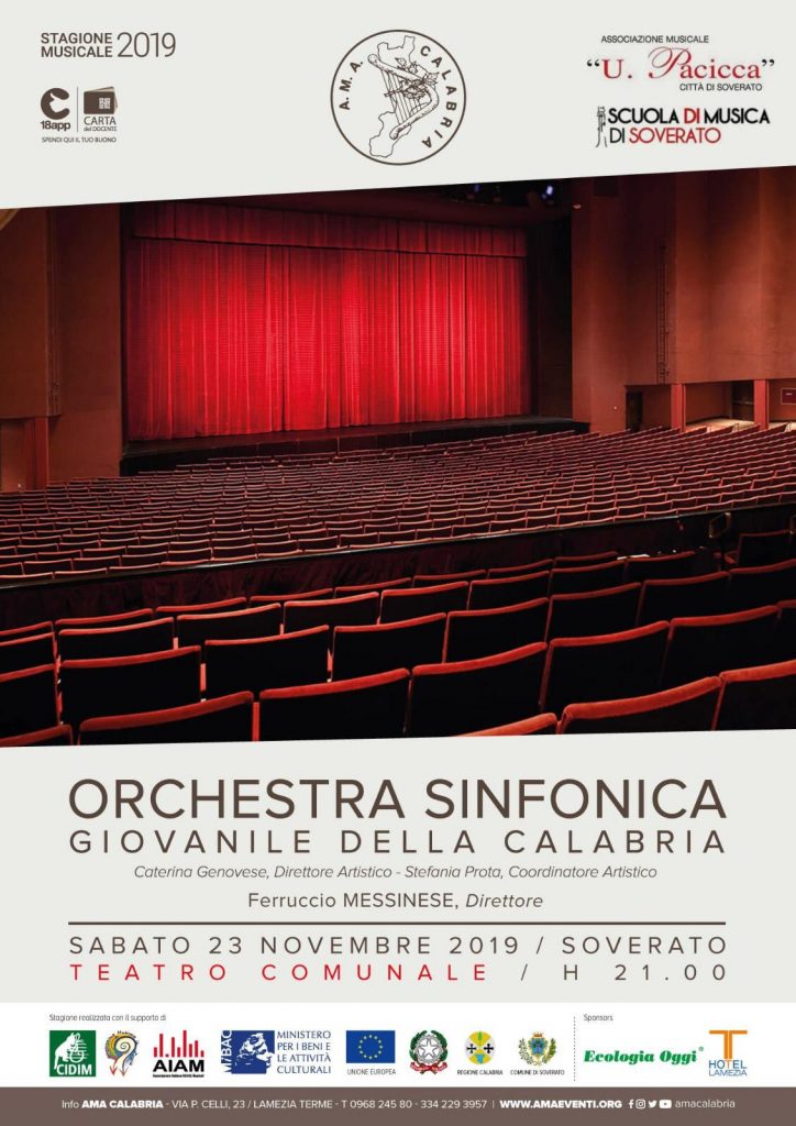 Sabato 23 Novembre ore 21.00 presso il Teatro comunale di Soverato con ingresso libero, l’ Orchestra Sinfonica Giovanile della Calabria, ensemble nato all’ interno di MUSICA INSIEME di Gioia Tauro (RC) attualmente, risulta composta da circa 60 giovani provenienti da diverse province della Calabria presenta il Concerto Sinfonico Classico Cinema e Jazz.