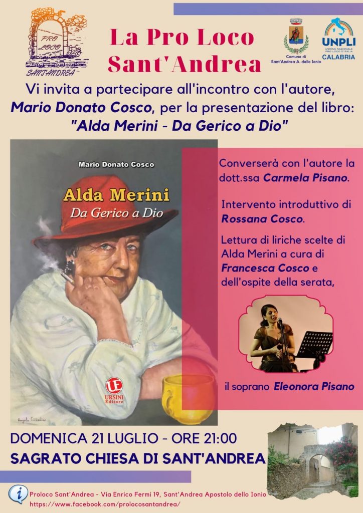 Sant’Andrea Apostolo dello Ionio, domenica 21 luglio presentazione del libro di Mario Donato Cosco, a cura della Pro Loco.