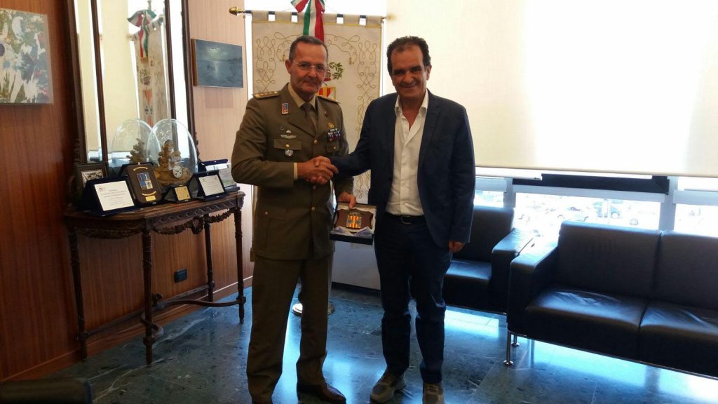 Il presidente della Provincia di Catanzaro, Enzo Bruno, ha incontrato questa mattina a Palazzo di Vetro il colonnello Giovanni Rossitto, nuovo comandante del Comando militare Esercito Calabria. Una cortese visita istituzionale che ha registrato, prima di tutto, la reciproca disponibilità a qualsiasi tipo di collaborazione. Al centro del colloquio le principali problematiche che interessano il territorio della provincia di Catanzaro, anche alla luce della rivoluzione organizzativa in atto seguita alla trasformazione dell’Ente intermedio in Area vasta, come previsto dalla riforma del sistema degli enti locali, la legge Delrio. Il presidente Bruno e il colonnello Rossitto hanno evidenziato l’intento di procedere con una progettualità comune volta a favorire la cultura della difesa del bene comune, ma anche per favorire la conoscenza dell’importante azione dell’esercito svolta sul territorio nazionale ed internazionale in tempo di pace, attraverso iniziative culturali, a partire dal confronto con gli studenti nelle scuole di competenza provinciale. Bruno e Rossitto hanno, altresì, concordato una visita al Museo Musmi, al Parco della Biosiversità Mediterranea, che si terrà nei prossimi giorni. Il presidente della Provincia ha, quindi, fatto dono al colonnello Rossitto di una cresta e di un ferma carte con l’effigie dell’Ente intermedio.