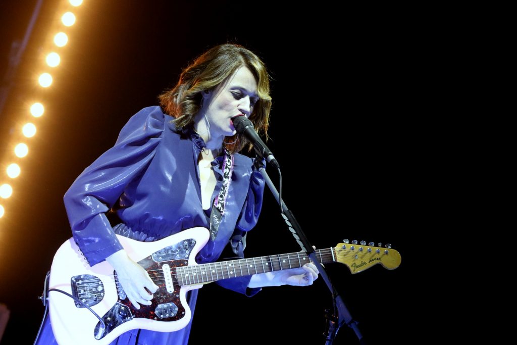 Avvolta da un fascio di luce con la chitarra a tracolla, la Consoli si presenta sul palco da sola. Figura esile e minuta nel suo abito elegante, è sembrata essere lontana dalla immagine della rocker che da lì a breve avrebbe “strapazzato” le sue chitarre.