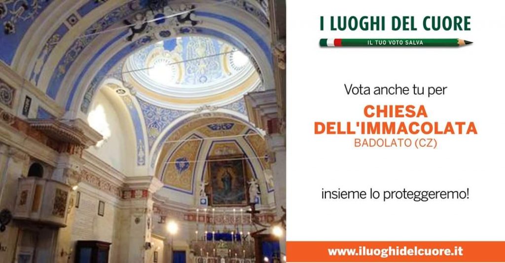 Anche la Chiesa dell’Immacolata di Badolato candidata al censimento del FAI – Luoghi del Cuore 2020.