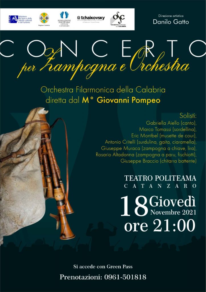 La zampogna protagonista nel concerto dell’Orchestra filarmonica della Calabria Giovedì 18 novembre alle 21 al Teatro Politeama di Catanzaro