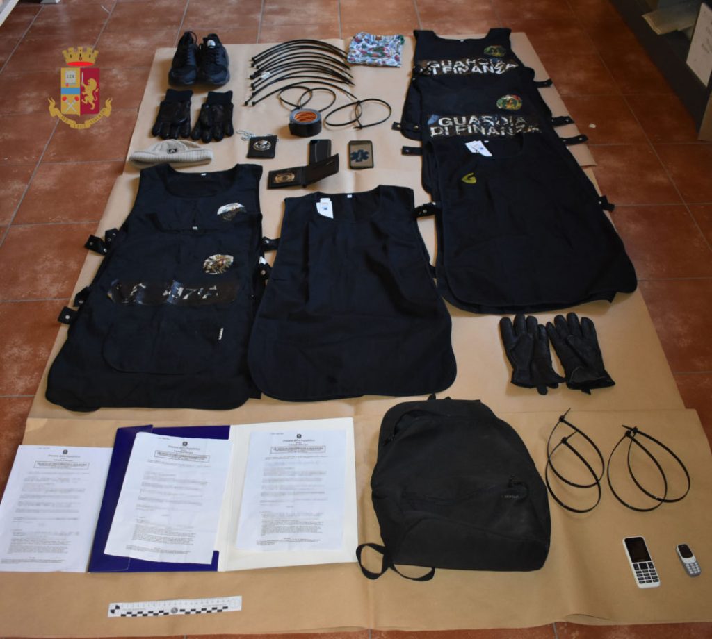 Gli arrestati, spiegano dalla Questura, sono stati trovati in possesso di “pettorine con le scritte ‘Guardia di finanza’ e ‘Polizia’ con le relative effigi, placche metalliche, diverse fascette di serraggio in plastica, un rotolo di nastro adesivo di colore nero, cappucci e guanti”, oltre a “tre fogli con intestazione e logo della Procura di Bologna, che riproducevano fedelmente un decreto di perquisizione e di sequestro“. E uno di questi fogli “era stato compilato a mano con i dati di una coppia di coniugi residenti nello stabile da cui i tre erano stati visti allontanarsi pochi minuti prima di essere fermati”.