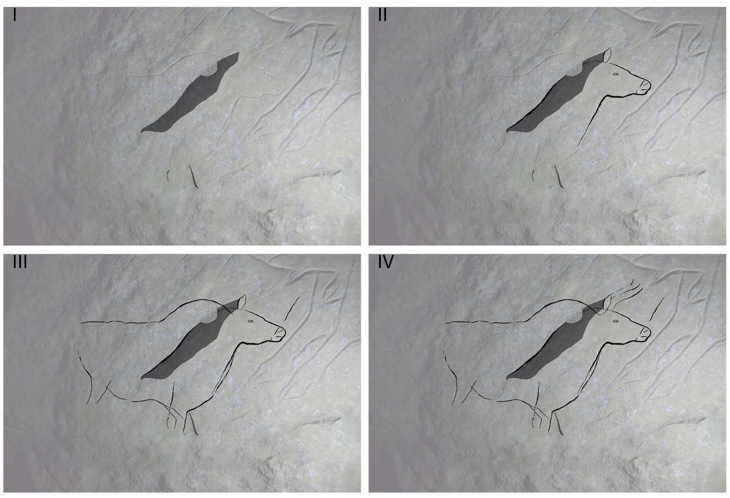 Inoltre l’irregolarità delle superfici rocciose ha aiutato uno sviluppo tridimensionale delle figure. Una strategia grafica che ritorna spesso nella produzione di arte paleolitica europea.
