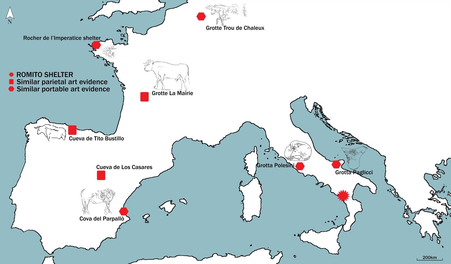 Da ultimo, questo lavoro esalta l’importanza del sito calabrese nel più ampio quadro europeo e mediterraneo, trovando confronti a larga scala (es. fino in Belgio o in Bretagna a nord, in Azerbaijan a est) che fanno supporre l’esistenza di un contesto dinamico di reti culturali e grafiche ad ampio raggio, all’interno delle quali il Riparo del Romito è perfettamente inserito.
