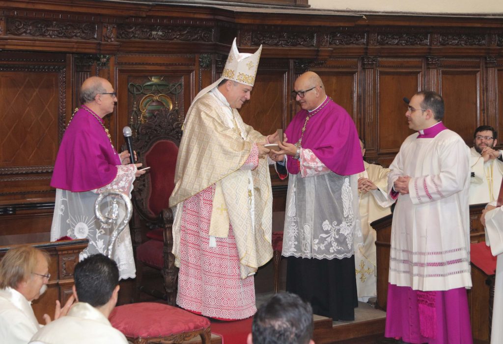 Già in occasione della sua Ordinazione Episcopale, avvenuta lo scorso 27 dicembre a Martina Franca, gli è stato consegnato il Pastorale in argento, realizzato dal maestro orafo Michele Affidato su mandato della Diocesi di Crotone – S. Severina.
