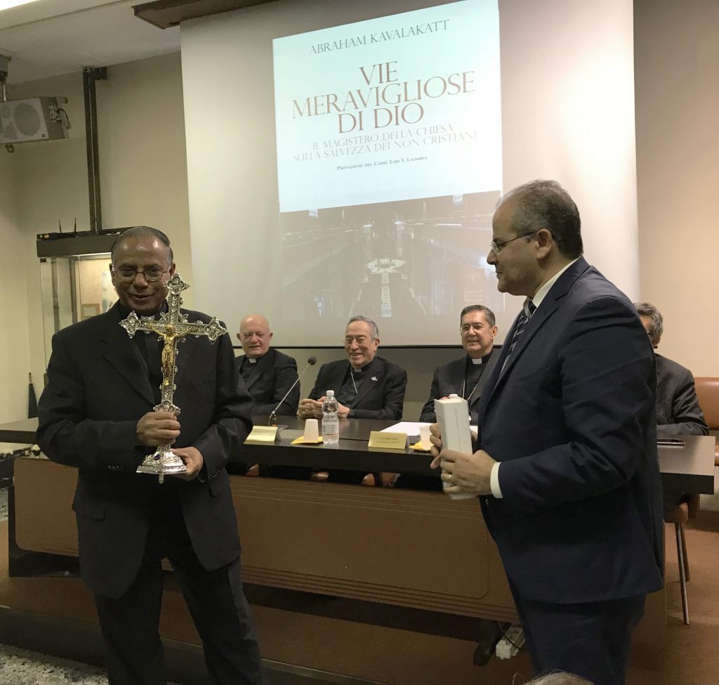 Per l’occasione l’orafo Michele Affidato ha realizzato una particolare croce per l’autore, Padre Abraham Kavalakatt