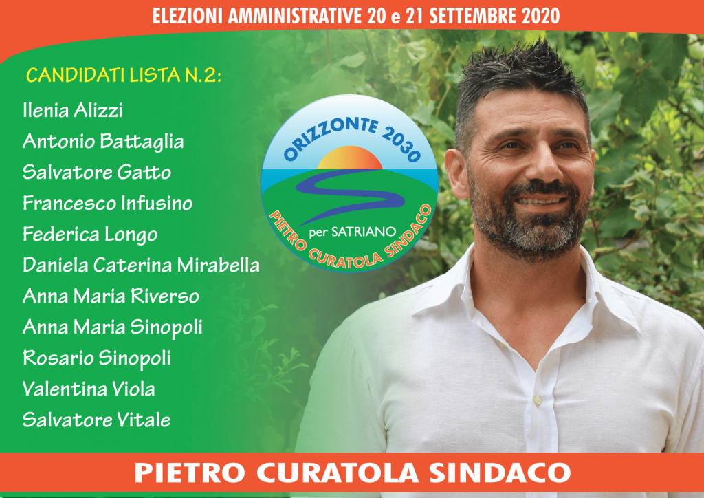 Domani pomeriggio, Venerdì 4 settembre ore 18.30, a Satriano in Piazza Monumento ci sarà il primo incontro pubblico di presentazione per i componenti della Lista Orizzonte 2030 per Satriano – Pietro Curatola Sindaco.