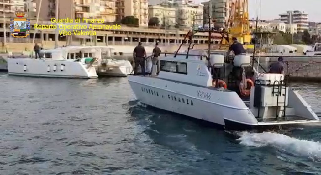 I Finanzieri della Stazione Navale di Vibo Valentia, il reparto di riferimento del R.O.A.N. per la sorveglianza marittima, hanno vigilato costantemente le mosse dell’imbarcazione, avvicendando le varie unità navali dei dipendenti reparti costieri minori impegnati, mano a mano che proseguiva la navigazione del catamarano, anche con l’ausilio di un elicottero in missione di esplorazione a largo raggio, della Sezione Aerea della Guardia di Finanza di Lamezia Terme e, all’altezza di Reggio Calabria, hanno affiancato lo yacht, invitando lo skipper, unico occupante apparente, a seguirli nello scalo reggino. Una volta in porto i militari, precisamente della Sezione Operativa Navale della Guardia di Finanza di Reggio Calabria, l’articolazione della menzionata stazione navale competente per quella porzione di mare, hanno avviato approfonditi controlli documentali e ispezionato il mezzo nautico.