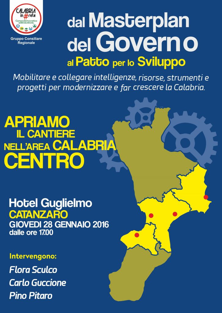 Obiettivo dell’iniziativa: “da una parte, far conoscere i contenuti del Masterplan del Governo Renzi per il rilancio del Sud e dall’altra, promuovere la partecipazione degli attori locali e regionali per la realizzazione del Patto per La Calabria”.