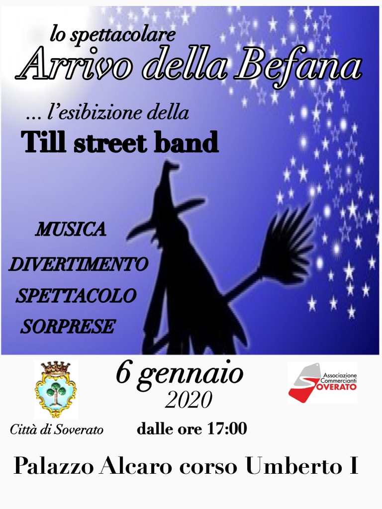 La manifestazione avrà inizio già dalle ore 17:00 con l’esibizione della Till street band che con le sue note musicali allieterà l’attesa dell’arrivo della Befana.