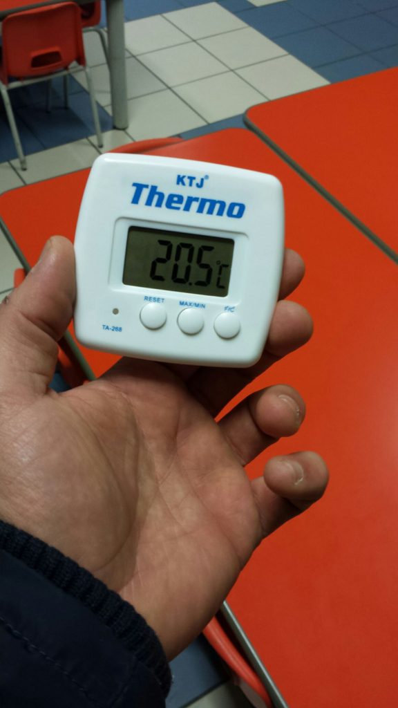 Allego al presente comunicato le foto scattate al termometro posto al centro delle aule a testimoniare la temperatura presente. Come si può evincere dalle foto le temperature riscontrate vanno dai 17 gradi trovati al primo piano dell’edificio scolastico a Soverato Superiore ai 21.8 gradi riscontrati alla scuola materna Nicolas Green.