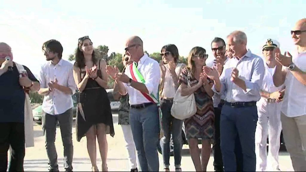 Taglio del nastro nei pressi dell’Hotel Daulia per l’inaugurazione del nuovo tratto del lungomare di Davoli.