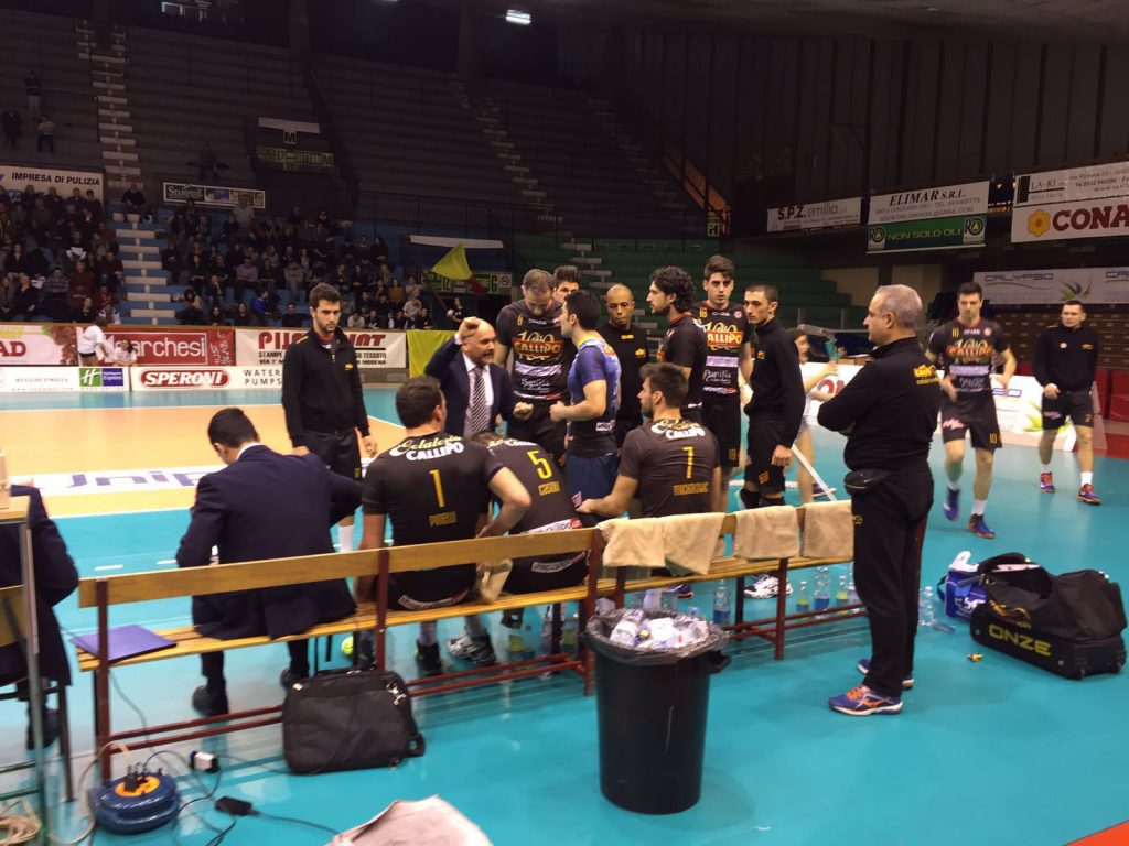 Tonno Callipo Calabria Vibo Valentia ko nell’anticipo serale del sabato della 22° giornata del campionato di Serie A2 UnipolSai, la 9° del girone di ritorno. Niente da fare per i giallorossi sul campo della Conad Reggio Emilia che si è imposta con il punteggio di 3-0. Per gli uomini di coach Mastrangelo arriva così il terzo stop consecutivo (il secondo di fila senza vincere set) fuori casa dopo quelli contro Brescia e Club Italia Roma. Onore alla compagine di coach Cantagalli, in forma strepitosa e capace di inanellare l’ottavo successo consecutivo da tre punti, ma la Tonno Callipo non è riuscita a sciorinare in campo tutte le proprie qualità. La partita è stata comandata dai reggiani nel primo set con Casoli e compagni sotto largamente nel punteggio. Poi nel secondo e terzo set è venuta fuori la capacità di lottare palla su palla, ma è mancato quel “quid” in più che in questo momento alla squadra manca dopo le fatiche dell’ultimo periodo. Reggio Emilia è stata più cinica nei momenti decisivi ed ha approfittato degli errori della Tonno Callipo (22 totali). Cetrullo ha trascinato i suoi nei primi due parziali con il 54% in attacco, dando poi spazio al camerunense Kody nel terzo set. Bene anche Benaglia con il 100% in attacco e due muri e i martelli Dolfo e Silva. Tondo, capitano dei reggiani, non ha brillato in attacco, ma è stato decisivo a muro e nel finale di terzo set in battuta trovando, con un pizzico di fortuna, l’ace della vittoria. Alla Tonno Callipo non è bastato un ottimo Pinelli che ha impreziosito la sua partita con tre ace e rendendosi più volte pericoloso al servizio. Casoli, Michalovic (18 punti con il 50% in attacco) e Vedovotto sono andati a corrente alternata e alla fine il capitano è stato sostituito nel corso del terzo set dal brasiliano Silva De Araujo. Ora per la truppa di mister Mastrangelo l’occasione per dimenticare velocemente la sconfitta arriva